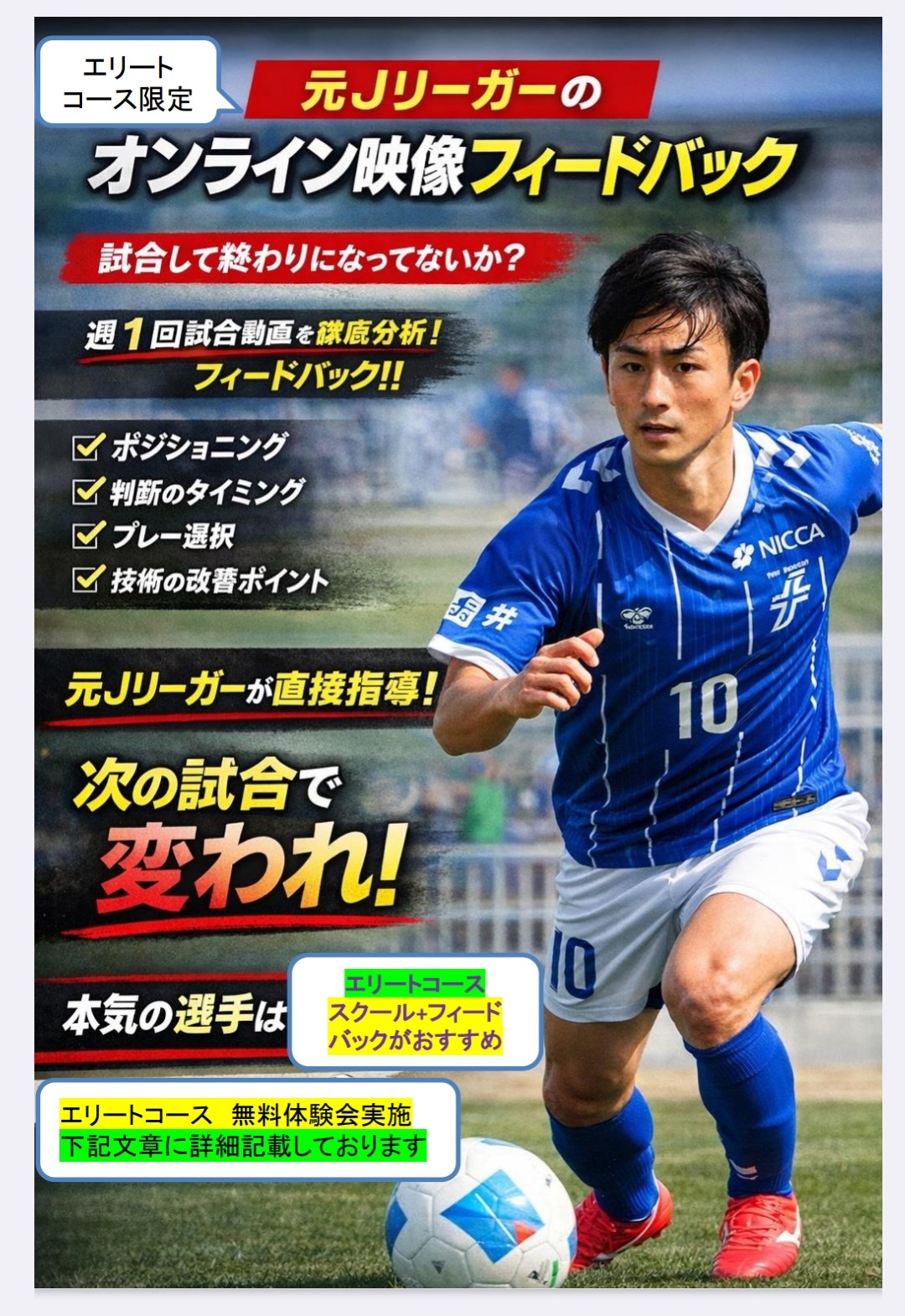 この度、元Jリーガー 「北川 滉平」による本気のクラスを開校いたします。